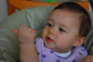 It was now time for lunch so I prepped her meal and got her started eating. I walked just a few feet away to prep MY lunch and MORE tears. She would not calm down unless I was sitting right there. I texted Y with "OMG! Constant tears over here!" It was just one of those moments that grates on your nerves. I don't care how calm and patient you may be but constant bursts of tears for no real reason will begin to drive you batty. Anyway, I decided I'd wait until Y got home to eat despite my now throbbing head and growling tummy. The Peanut and I decided to go outside for a while - it was upper 70's and a gorgeous day. Remembering Y may be calling soon, we headed back inside shortly after 1pm. He finally calls around 1:30 - meeting ran late but he was on his way.